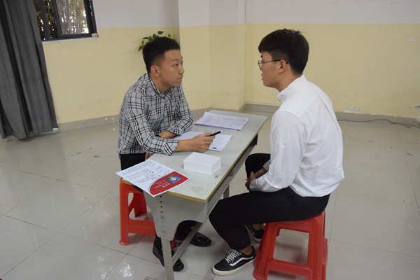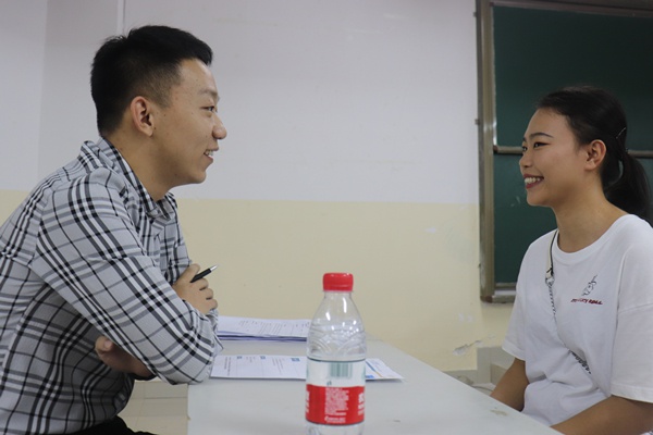 最后,开始了紧张的面试环节。在面试开始前,面试官在场内精心地做好面试前的准备工作,而我院等待面试的学子则整装待发,信心十足。面试正式开始后,学子们手持个人简历,自信大方地回答面试官的问题。我院学子从容不迫。自信大方的举止、谦虚有礼的态度获得了面试官的赞许和认可。