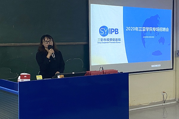 10月28日14:00,我院携手三亚市投资促进局共同举办的实习生面试招聘会在书知楼1107教室顺利召开。由三亚市投资促进局人力资源部的李山担女士任本次招聘会面试官,参加本次面试的有2017级与2018级学生。