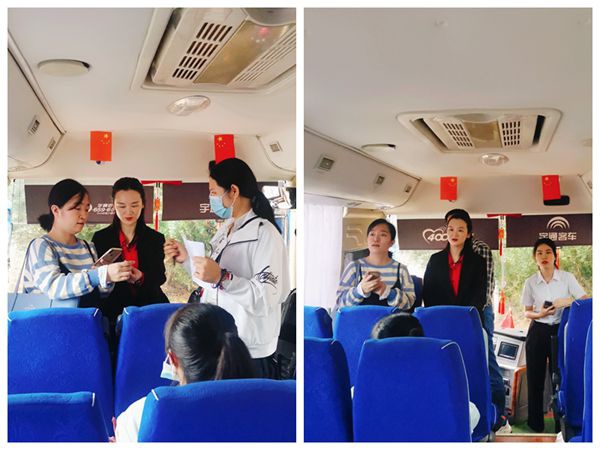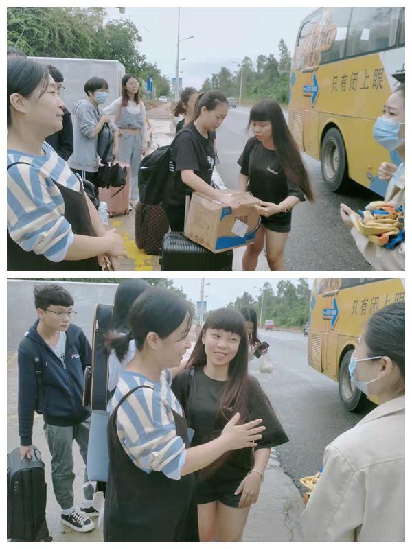 本次蔚蓝时代实习分为海口与三亚两地,实习生们首先统一在校门口集合,一部分前往火车站出发去海口,一部分前往三亚实习地。同学们井然有序的上车,开启他们的实习之旅,王艳琴老师在现场强调实习小组同学互帮互助,共同进步。