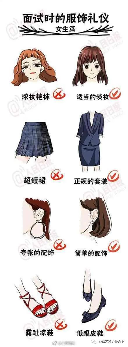 妆发:女生可适当画淡妆,包括口红,但不能浓妆艳抹,过于妖娆,不符合大学生的形象与身份。不管长发还是短发,一定洗的干净、梳的整齐。