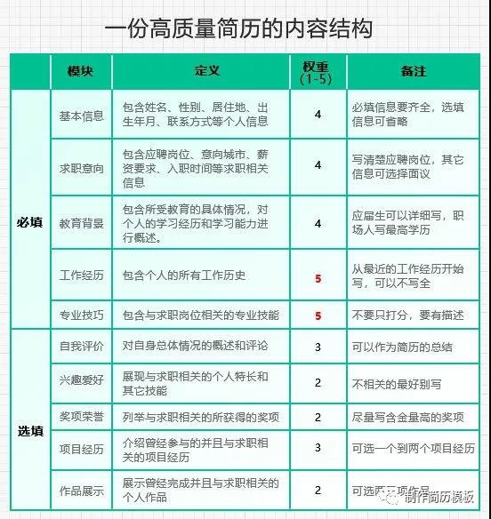 简历五大模块