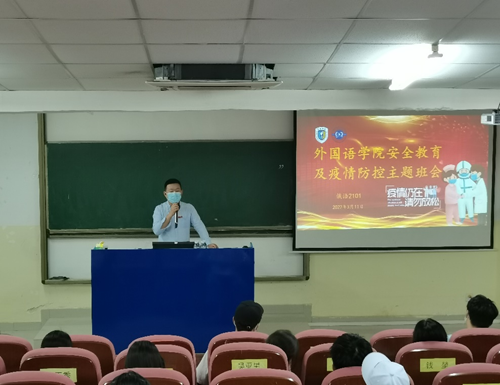袁书记就近日全国的疫情复杂状况与因快递传播疫情的紧急情况向同学们进行了安全教育及出现特殊状况的处理程序的讲解,提醒同学们减少快递订单,做好消杀及个人卫生的防护,保障自身及他人的安全。同时注意个人饮食卫生,不购买来历不明和黑作坊的外卖,到正规的就餐场所用餐,保障身体健康。减少流动,做到非不要不外出,确需外出做好报备,记录好行动轨迹。袁书记还强调了本学期会坚持查课查寝,并且注重抓学风和严四禁的问题,并且会对翻墙外出学生进行严肃违纪的管理。
