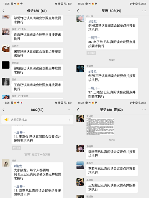 林玫老师就疫情防控相关工作进行了详细说明,目前国内校园疫情多发,提醒学生要做好疫情防控措施,不信谣,不传谣,科学防控。林老师提醒各位同学,若收到疫情防控相关信息要及时上报给学院。减少网购,非必要不网购,在接触包裹后注意手部清洁,做好清洁消毒,杜绝物品传播的风险。班会结束后还将班会主要内容发给各班班级接龙确认,并承诺做到班会相关要求。