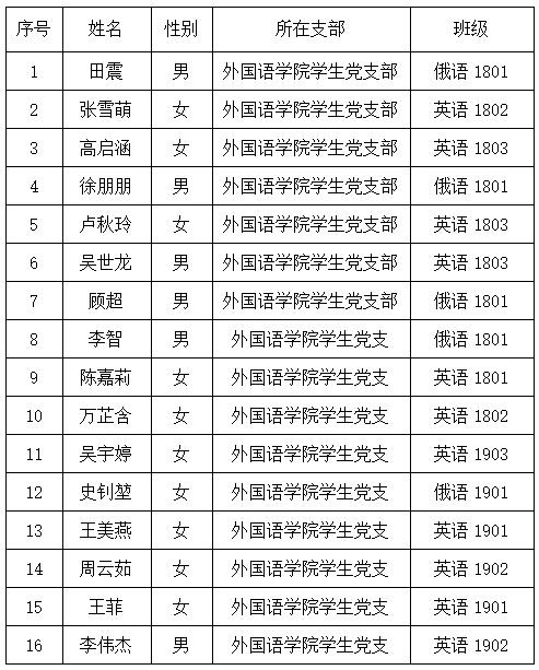 经党组织一年来的培养教育和考察,预备党员田震等同志预备期满,拟在近期召开党员大会分别讨论他们的转正问题。为了进一步增强发展党员工作的透明度,严格组织发展工作程序,防止不正之风,确保发展新党员的质量,现将预备期满的预备党员名单公示如下:
