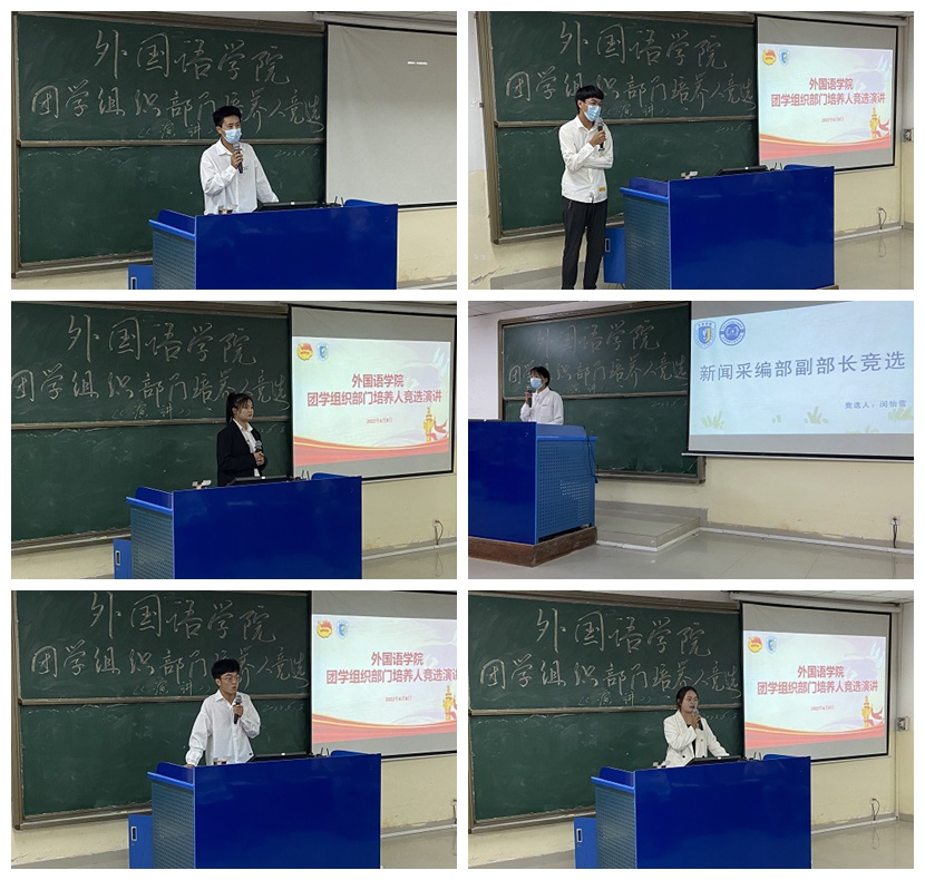 为了给我院团学组织注入新的血脉和活力,保持长久以来我院团学组织的稳定运作,6月8日18:00,我院在书知楼一号楼1107召开了团学组织部门培养人竞选大会出席此次会议的有我院团委副书记袁威老师,我院团学组织成员也集体参加。