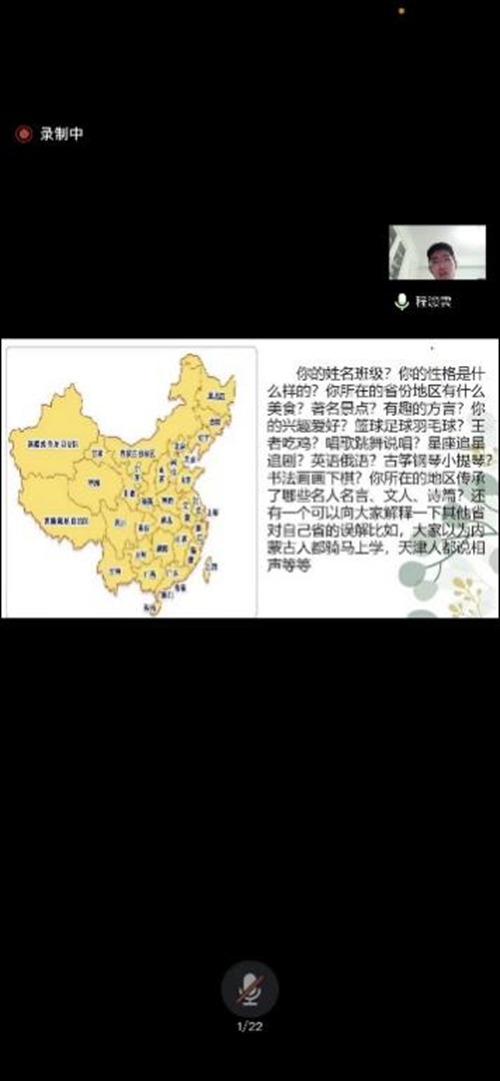 接着, 同学们有序的按照省份进行了自我介绍,过程中同学们积极配合,并表演了很多才艺,比如舞蹈,唱歌,拍摄的照片等,还有一些同学精心制作了视频,让我们看到属于新外院人的朝气蓬勃的青春色彩。