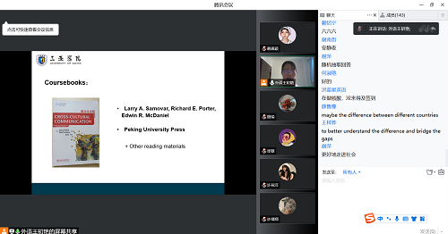 此次课程分成了两部分,上半节是由王初艳老师主持开展。首先,王初艳老师“抛砖引玉”,用生活日常中再平常不过的头像引入今天的第一个关键词“culture”,以中西方各种行为的不同点举例说明文化差异。新生们的学习热情也非常高涨,积极地与老师对话互动,在评论区互相讨论。在此期间,老师也给同学们介绍学院的教学改革细节和课程性质,耐心地解答同学们对一些具体问题的疑惑,也对专业课教育其中包括学什么、怎么学、以及大学教育的目标给出了详细的解读,让一些对大学生活感到无所适从的同学减少了心中的迷茫。对于如何调节大学学习中学习方法的问题王初艳老师也给出了建议,在专业课上遇到不懂的问题要及时寻求老师或者学长学姐们的帮助,以便于更好地解决。