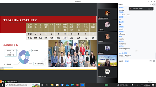 9月21日8:00,我院线上开展2022级全体新生专业入门指导课程,目的是为了帮助2022级新生了解英语专业的基本情况,使新生们在学习过程中能更好的规划未来学习计划。本次专业入门指导课程我院邀请到中国旅游研究院博士后赵宽教授为我们从多方面分享学习方法,英语系副主任余玉秀副教授担任主讲老师为2022级新生进行专业入门指导课程。