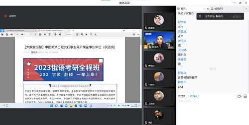 为了增加大一新生对专业方向选择的了解,提高学习核心专业课的动力,我院于9月26日8:00用腾讯会议开展了俄语专业入门指导教育课,由程海东老师担任主讲教师,我院2022级俄语专业的同学参加。