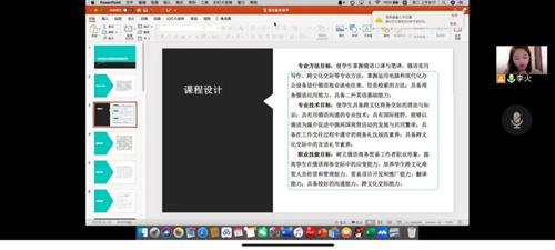 接着李老师介绍课程设计,课程设计分为专业方法目标、专业技术目标和职业技能目标三个方面,使学生掌握俄语口译与笔译、俄语实用写作、跨文化交际等专业方法,使学生具备跨文化商务交际的理论与知识,树立俄语商务贸易工作者职业形象,提高学生在俄语商务交际中的应变能力等的专业技能。