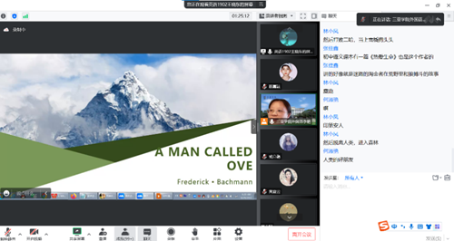 随后,来自英语1902班的黄晓东向新生们“安利”他的推荐书目A Man Called Ove(一个叫欧威的男人)。此书讲述了一个因为生活处处不得志、妻子的突然离世对其造成重大打击的名为欧威的男子,决定结束自己生命,多次尝试也不顺利,后在他人的帮助下重拾对生活的信心,成为一个温暖他人与“被他人温暖”的人。黄晓东介绍的这本书与李艳老师推荐的《野性的呼唤》有异曲同工之处,引起了同学们的深思。欧威的故事映射的是我们大部分人平凡的生活,我们生命的意义正是在于被其他人所需要,无论是一颗多么强大,多么有力的心脏,都需要被“爱”包裹。