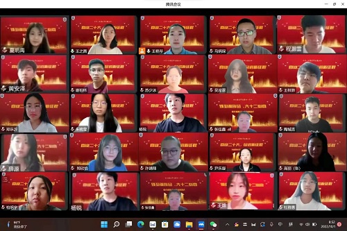 正值盛世华诞,全体2022级新生在云端相见,为祖国庆生,同学们共同观看了天安门广场举行的2022年国庆升旗仪式,五星红旗缓缓升空,全体同学庄严肃立,行注目礼,祝福祖国。接着,同学们观看了青春USY公众号发布的我校同学《国旗下讲话》视频,同学们在评论区积极交流观看心得。 最后,全体同学以“喜迎二十大,奋斗新征程”为背景,与祖国合影,不同地域的同学们,透过屏幕共同为祖国庆生,定格此刻,庆祝新中国73周年华诞。 此外,王老师也向同学们送上了国庆祝福,并进行了十一国庆假期安全教育,嘱咐同学们注意做好安全防范,不前往危险地带,不前往中高风险地区。 我们生在国旗下,长在春风里,人民有信仰,国家有力量。作为当代大学生,每一名同学都应继承和发扬爱国精神,关心国事、天下事,增强新时代大学生使命感、自豪感和荣誉感。