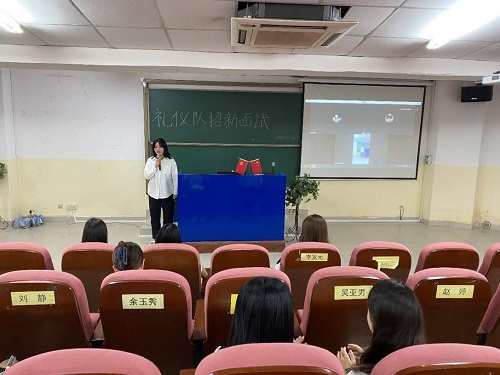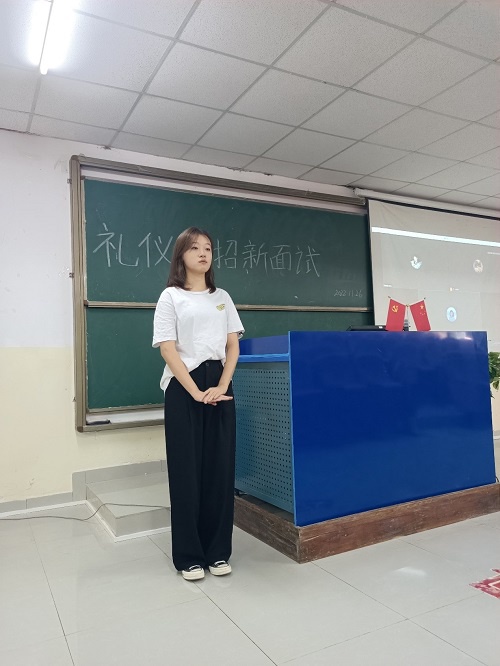 为了更好的配合学校各项活动的进行,提升学生的个人素养,2022年11月26日星期六上午十点,外国语学院礼仪队在书知楼1107教室进行招新面试。此次面试负责人员为礼仪队队长刘琪琪,副队长金海洋、石凡凡。 礼仪队队长刘琪琪、副队长金海洋为这次面试致开场讲话,对各位来面试的同学表示欢迎。面试首先进行的是自我介绍环节,同学们简单的介绍了自己还有对礼仪队的认识和了解。接着,礼仪队负责人对面试者进行提问,考察同学们随机应变等综合能力。