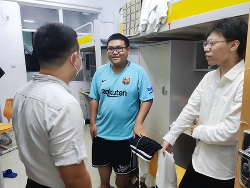 为更好的了解我院学生的学习生活情况,12月7日21:00,我院团委副书记袁威老师,思想导师林玫老师对我院学生宿舍进行了走访慰问。 在走访过程中,袁威老师耐心询问了同学们日常学习生活中遇到的问题并给予了相关建议,同时也对宿舍的安全隐患进行了排查,提醒同学们注意寝室用电安全,不要晚归。林玫老师也细心的与同学们进行交谈,叮嘱同学们遇到困难时及时向思想导师们反映,并鼓励同学们认真学习,养成良好的学习生活习惯,保持青春活力的大学生形象。 本次走访宿舍活动不仅进一步拉近了老师和同学们之间的距离,更有利于提高同学们的宿舍安全意识及卫生健康意识,让同学们切实感受了学院老师们的温暖与关怀。 图片:殷智 郭欣悦 文字:闵怡雪 编辑:闵怡雪 审核:袁 威