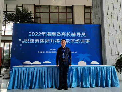 为进一步加强辅导员队伍建设,提升辅导员综合素质,增强团队意识,搭建辅导员深度沟通的平台,着力打造一支政治强、纪律严、作风正的学工队伍,12月11日—12月16日我院团委副书记袁威老师在海南澄迈参与了由海南省教育厅主办,海南省高校辅导员培训和研究基地(海南大学)承办的2022年海南省高校辅导员职业素养能力提升示范培训班。