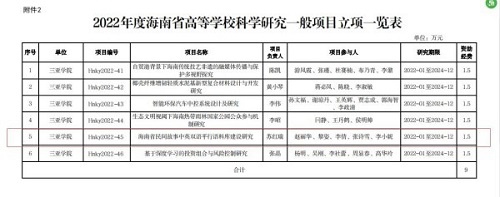 (二)科研脚步无停歇 “创新”是我院科研团队的不变追求。我院科研团队不仅融合当下数字媒体的发展,开展数字化课程教学,更注重于实践与学科的交叉融合,推动产教融合;我院科研团队积极展开研讨会议,探索当下语言教学科研的创新性发展,活跃参加名师讲堂讲座、教学研究方法讲座等,讨论教师教育研究的不同视角下的不同理解。 我院获2022年海南省高等学校科学研究项目立项4项
