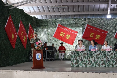最后,由来自传媒与文化产业学院的学生代表樊智硕发言,她表示接下来的军训生活大家要做好思想准备,但正如孟子所说,只有“先苦其心志”,方能“增益起所不能”,只有经过“苦”的洗涤,才能铸就钢铁般的意志。她将用行动证明:我们不是温室的花朵,而是傲雪的红梅。我们不会输我们要用自己坚强的意志、无穷的智慧让我们的祖国更加繁荣富强!发扬艰苦奋斗精神,流血流汗不流泪,给自己一份满意的答卷。 学生代表樊智硕