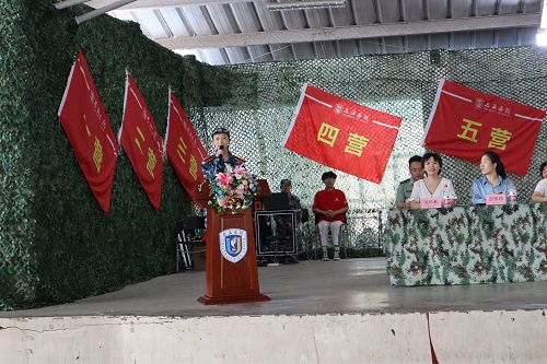紧接着由吉阳区人武部上校政治委员曹复学发言,曹政委首先肯定并表扬了我校的军训开训,他提到同学们在军训过程中要严格遵守纪律,服从命令,听从指挥,必须在军训期间用严格的纪律约束自己,遵规守纪,通过军训增强纪律观念,形成良好的行为习惯,以积极的态度投入到训练中,发扬流血流汗不流泪的精神,以实际行动交出自己学习过程中的一张满意答卷,为今后的学习和生活打下基础,为自己的大学生活交出一份满意的答卷。 吉阳区人武部上校政治委员曹复学发言