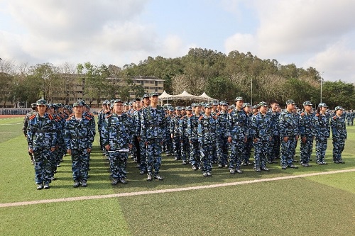 在列队等待时,我院学子们都精神饱满,蓄势待发,准备以良好的状态迎来军训的第一天。同学们听从教官的指挥,井然有序的调整着队列,最终在教官的带领下,整齐有序的到达风雨球场,静待着军训动员大会的召开。