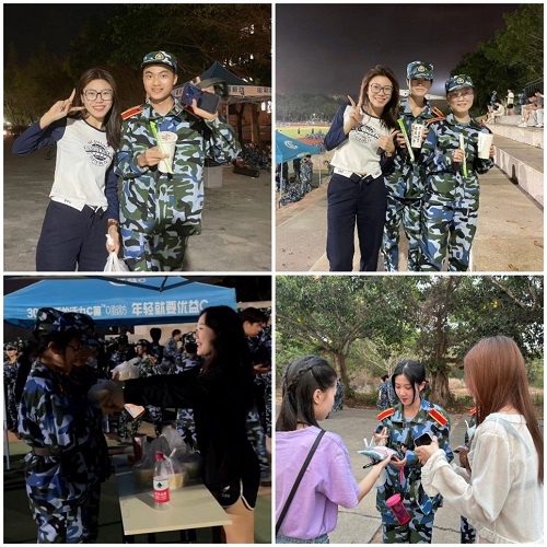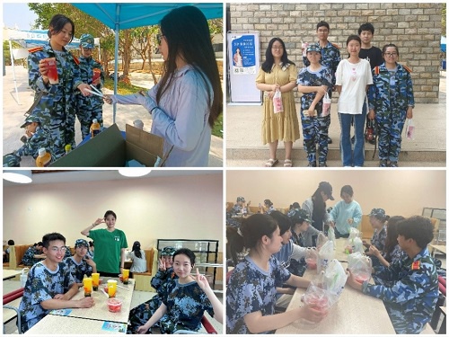 军训是一种人生的体验,是战胜自我、锻炼意志的最佳良机。为鼓舞其士气,助长其精神,在我院2022级学子军训期间,我院团学组织各部门部长为各自部门的干事们送上了一份烈暑中的清凉。