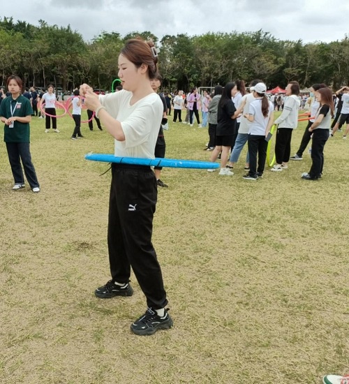 最后我院在教职工团体趣味竞赛中取得了勠力同心第三名以及众人击鼓第四名的优异成绩。此次教职工团体趣味竞赛不仅增进了教师间的友谊,更增强了我院教职工团结协作的精神,诠释了齐心协作的重要性,助力营造我院互帮互助的良好氛围,推动我院体育建设蓬勃发展。 呼啦圈穿针
