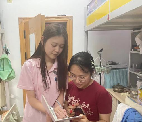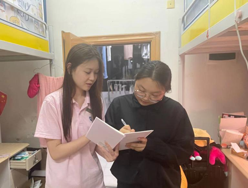 4月13日21:40,外国语学院公关联络部副部长金海洋带领干事陈曼妮在外国语学院女生宿舍开展女生宿舍走访,关心女生心理健康活动。