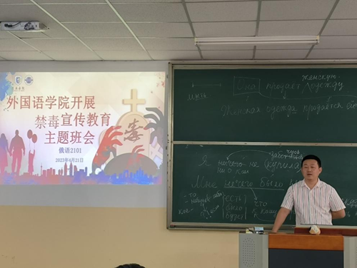 2023年4月21日15:40,外国语学院俄语2101 班在袁老师的带领下,在书知楼1304召开了主题为“禁毒宣传教育”的班会。旨在提高学生的毒品认知水平和防毒意识,帮助学生更好地了解毒品的危害,远离毒品。