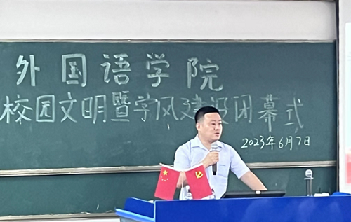 为了进一步营造良好学风,加强我院教学秩序管控,全力提高教学质量, 6月7日13:00,我院于书知楼1107召开“校园文明暨学风建设月“闭幕式,我院团委副书记袁威老师出席了本次活动,我院团学组织成员,各年级班委代表参加了此次活动。