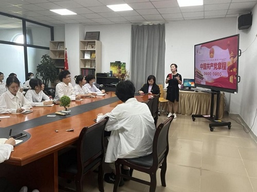 为加强入党积极分子的培养教育,确保党员发展质量,我院学生党支部于2023年6月21日15:45在书知楼1410开展了入党积极分子培训。本次培训由我院学生党支部宣传委员王艳琴老师主讲,学生党支部组织委员林玫老师及我院入党积极分子参加。 我院学生党支部宣传委员王艳琴老师正在讲课