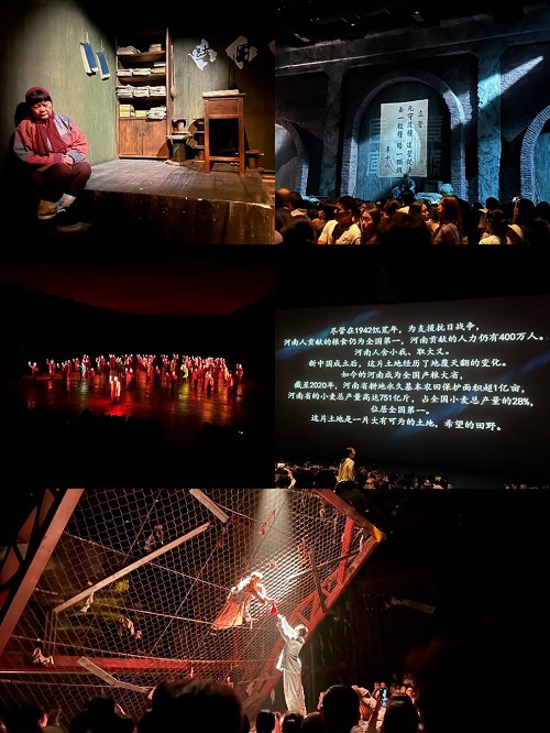 本次出行我的最主要的目的地是“只有河南戏剧幻城”这个景区,三个大剧场是必看的。作为一名戏剧观众,印象最深和最喜欢的就是火车站剧场和李家村剧场讲的1942年河南饥荒的统一故事,完全震撼了我!行进式的观演关系,可以将自己完全沉浸在故事之中,每个分场的表达方式完全不同,又巧妙的统一在一起,最后还有强大的价值观输出,真是兼具商业性、艺术性和宣传性的教科书式剧目。幻城剧场把历朝历代曾与河南有联系的重要历史人物串联在一起,舞美和机械装置可圈可点,具有强大的视觉效果。