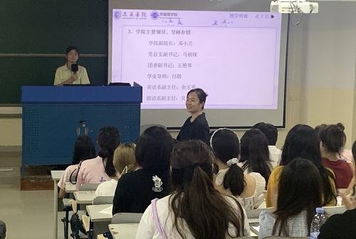 张老师首先向新生做自我介绍,然后向新生介绍学校基本情况,希望新生可以秉承我校校训、校风在接下来的四年里好好学习,更好地走向社会;随后,张老师向2023级新生介绍了我院老师基本情况。