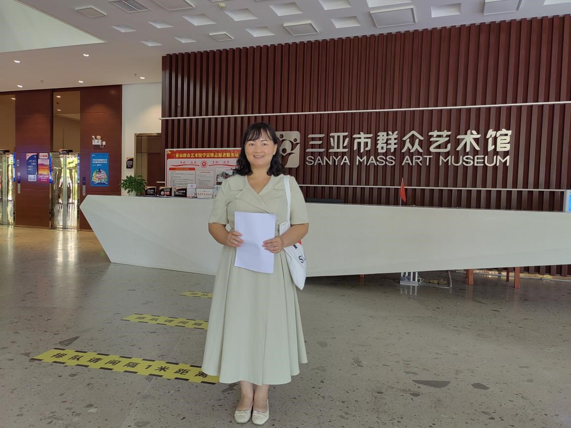 2023年暑期,英语专业黎姿老师到三亚市群众艺术馆进行实地调研,了解三亚市群众艺术馆对海南省非物质文化遗产的搜集、整理、保护与传承,以便了解翻译和传播海南非遗文化对学生翻译能力和跨文化传播能力的要求,将其内化于英语专业核心课程《英语翻译理论与实践》的课程内容与考核方式中,探索海南非遗文化走进我校英语课堂的有效途径,让学生在学习翻译理论与实践知识的同时,进一步了解海南非遗文化,并对海南非遗文化进行有效的翻译和国际传播。