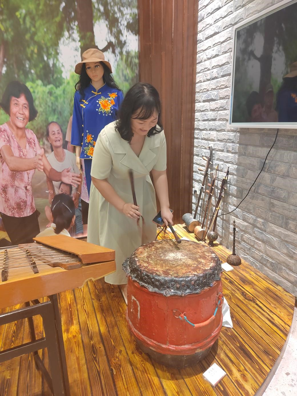 图3:黎姿老师体验崖州民歌乐器