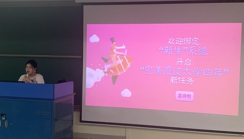 接下来由英语2101 孟诗怡为大家讲述怎么开启大学生活,分为三个板块:“早了解”、”早适应”以及“早规划” 。围绕三个方面向2023级同学分享生活经验,了解校园环境,调节大学焦虑适和适应大学生活,给同学们提供了制定大学规划的思路。