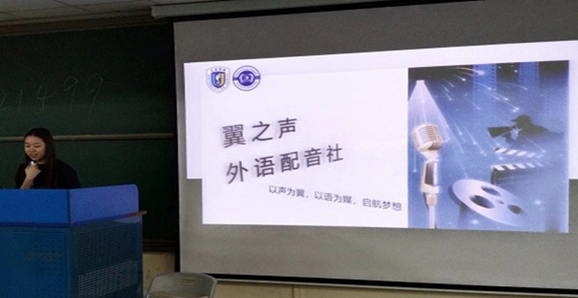 接着,由社团介绍人刘瑶和丰雪婷向大家介绍翼之声外语配音社。此社团采用有趣的配音方式,以塑造鲜明的人物形象提升外语口语能力与表达能力,帮助同学们提高专业素养,感受语言的魅力。