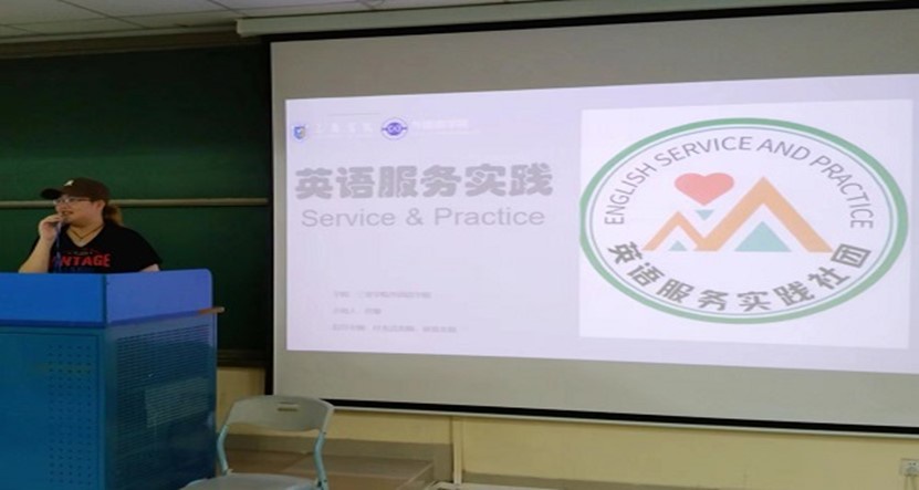 首先由社团介绍人符豫介绍英语服务实践社团,通过优秀作品展示、社团组织成员及结构、学期活动计划等方面全面展示出社团风采,以“只要张开嘴,这里便是你的天地”积极呼吁同学勇于尝试与创新,现场气氛活跃,同学积极互动。