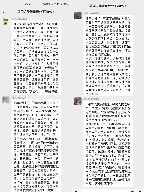 为庆祝祖国74周年华诞,激励我院学生党支部积极分子踔厉奋发、勇毅前行,我院学生党支部于10月1日10:00在书知楼1107组织观看爱国电影《建国大业》。本次观影活动由我院学生党支部书记王艳琴老师主持,全体积极分子参加。
