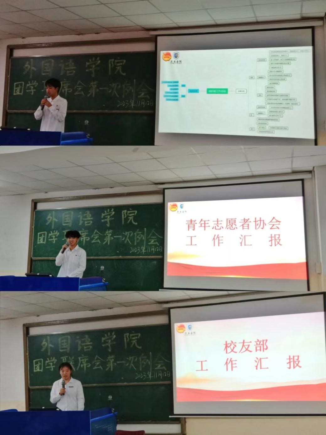 本次会议是我院团学联席会第一次例会,会议第一项,由各班级班长介绍本班班委;会议第二项,由团学组织各部门介绍部门各干事及汇报工作情况,并且展示工作成果;会议第三项,由院团委副书记王艳琴老师发言并总结会议。