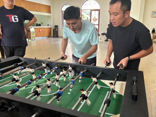 来到桌上足球赛场,我院教职工们运筹帷幄,随机应变,迅速的反应与灵活的战略是他们最好的利器,给在场的观众们展现了一场酣畅淋漓的竞技。