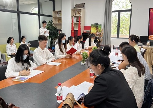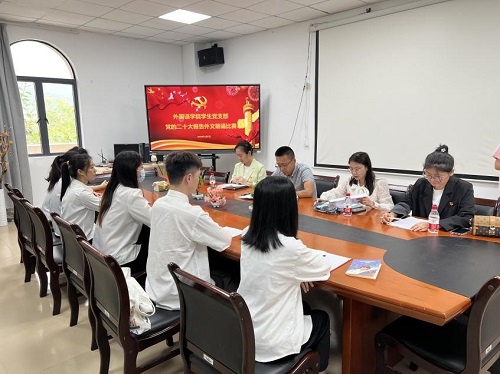 为深入学习贯彻党的二十大精神,教育、引导、激励我院学生党员同志的积极性,我院学生党支部于12月7日15:00在书知楼1410组织开展党的二十大报告外文朗诵主题党日活动。本次活动由我院学生党支部书记王艳琴老师主持,外国语学院党总支副书记马炳琛、教工党支部党员潘红、张芮楠以及学生党支部预备党员及以上同志参加。