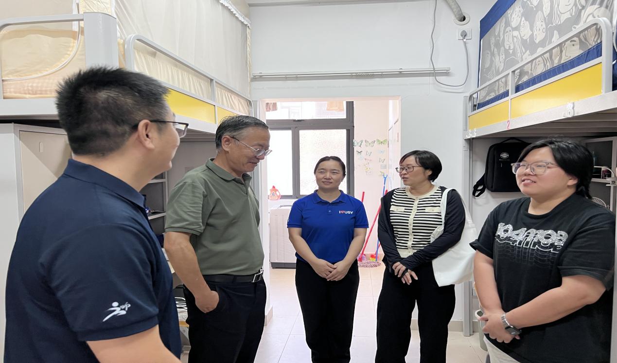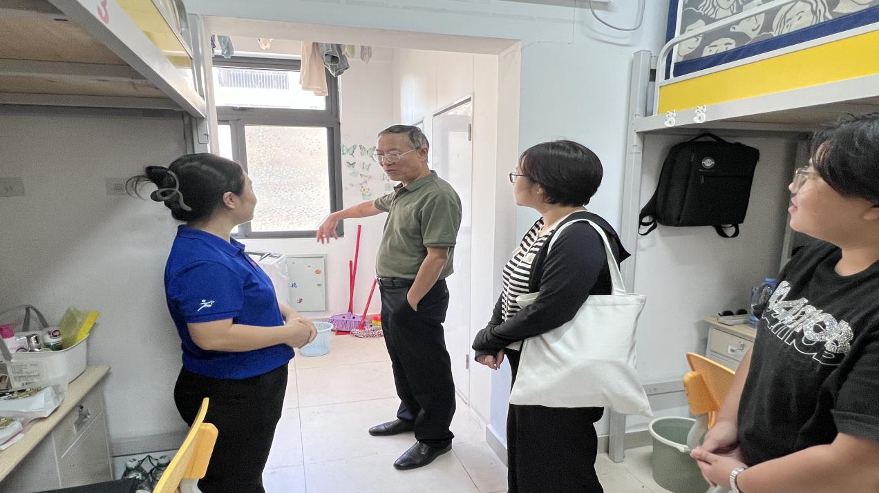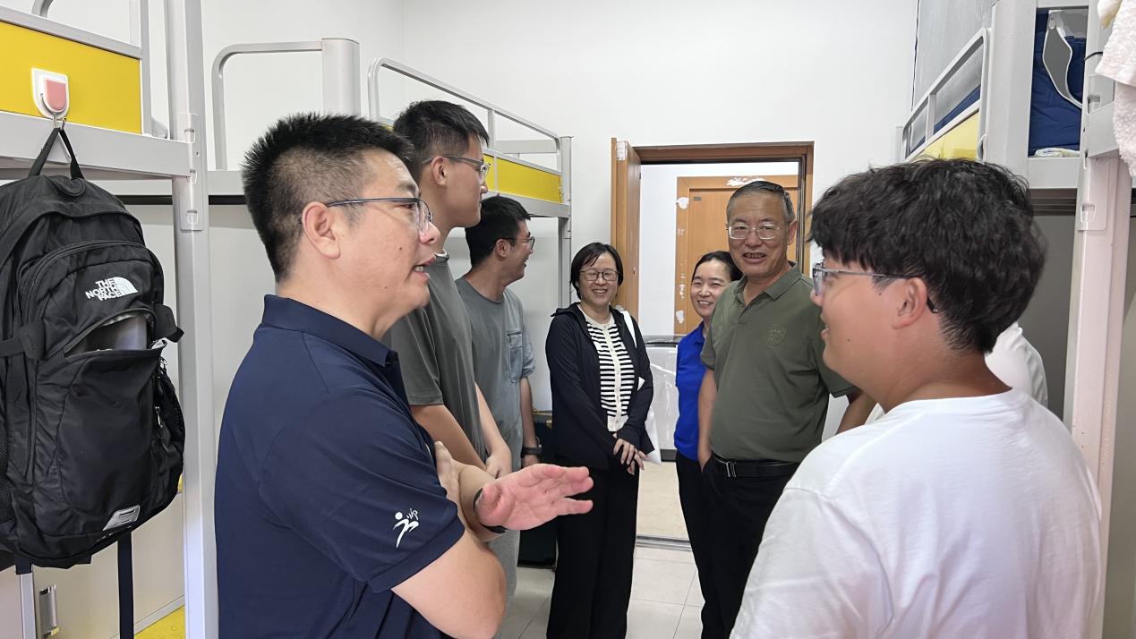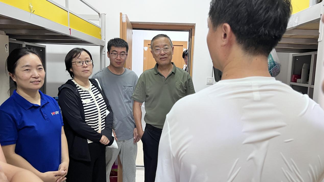 抵达宿舍后,领导一行先细致查看了宿舍的硬件设施与居住环境,每一处细节都仔细检查,确保为同学们提供安全、舒适的居住空间。同时,关心他们的入住感受,传递学院的温暖与期待,尽力为其提供优质的学习环境和生活条件。