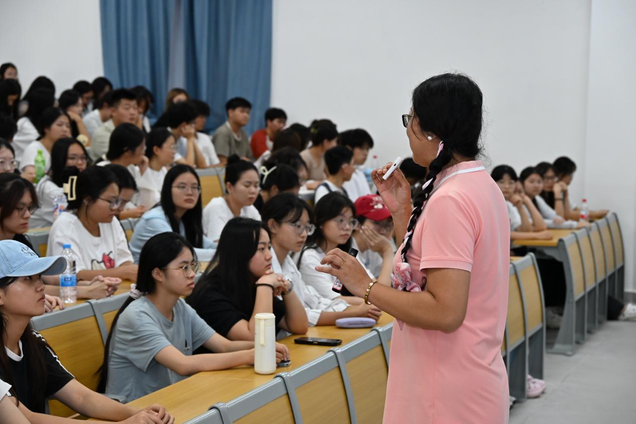 在学业与职业规划指导环节,付老师向新生明确了大学四年学业需达到的核心标准,包括课程成绩要求、专业技能掌握目标等,引导新生树立清晰的学业目标。她建议新生在完成基础学业的同时,主动考取与专业相关的资格证书,以增强个人核心竞争力;针对新生可能面临的学业或生活困难,她强调要及时与思想导师、专业老师沟通求助,避免问题积累;此外,她还鼓励新生积极参与校园文化活动,如加入专业社团、参与阅读分享会等,通过多元途径丰富学识储备,提升综合素养。