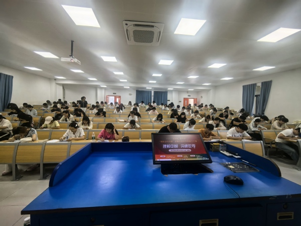 比赛现场气氛紧张而有序,来自英语、酒店管理、国际商贸等不同专业的学生沉着应战,奋笔疾书。面对融合时政要闻与社会热点的赛题,选手们或凝神解读中国传统文化相关的核心理念,或通过数据解读“数字经济”发展趋势,亦或评述“文化出海”的当代意义,展现出扎实的语言功底与广阔的时代视野。