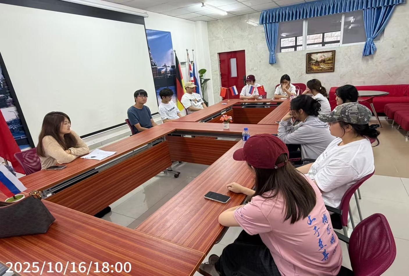 2025年10月16日,外国语学院的俄语活动中心1104教室内气氛热烈,俄语翻译服务社团新学期首次见面会在此成功举办。本次见面会为新老成员搭建了交流的桥梁,不仅让新成员快速融入社团,还通过学长学姐的学习经验分享,让他们在俄语翻译学习的道路上有一个初步的了解。