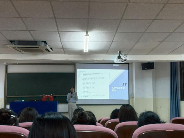 潘红老师正在介绍三亚学院翻译硕士点奖学金