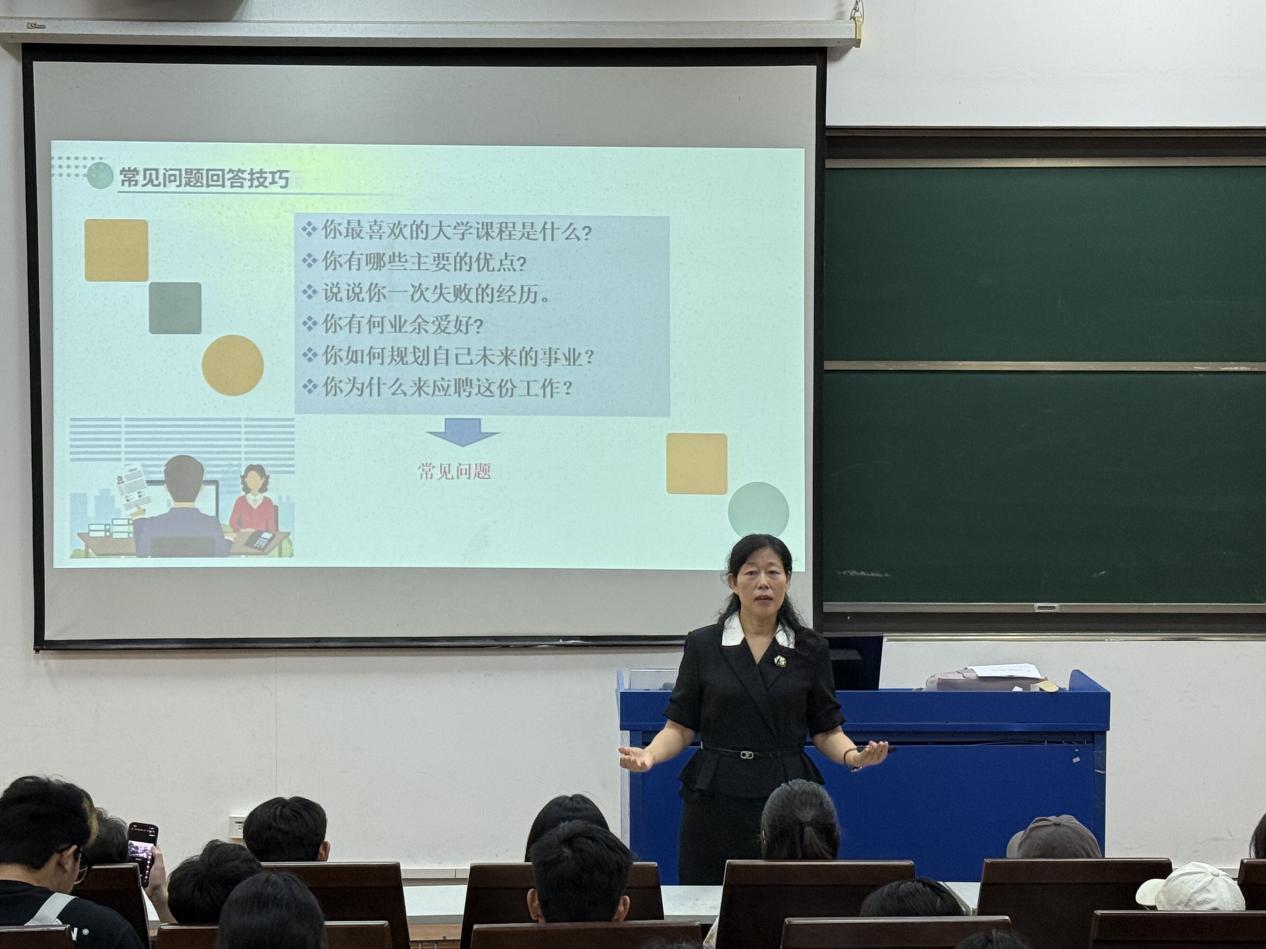赵亚丽导师拥有高级人力资源师、中级社工师等资质,并具备多领域职业规划经验。在活动中,她以“面试沟通”为主题,从面试准备、礼仪规范、沟通技巧三个维度进行全面讲解。她不仅指导学生如何精准匹配岗位需求并梳理自身优势,还通过案例解析,深入剖析面试中的表达逻辑与情绪管理要点。现场还特别设置了模拟互动环节,帮助学生直观掌握有效的沟通方法。