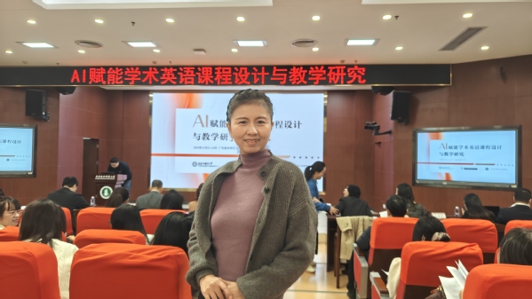 胡翩翩老师代表三亚学院外国语学院公共外语教学部参与了本次研修。为期三天的研修,内容充实、前沿且实用。香港大学李泳燕副教授从国际研究视野出发,探讨了AI在学术写作教学中的伦理责任与创新机遇,引发了我们对如何引导学生负责任地使用AI的深层思考。香港浸会大学王浩博士通过线上工作坊的形式演示了如何利用生成式AI工具快速生成课件、创建定制化聊天机器人,为个性化辅导提供了清晰可行的路径。此外,华南师范大学金檀教授介绍的“一针三库智能教研平台”,为学术阅读素材的智能化开发与分级教学提供了强大工具。宁波大学雷军教授分享的内地高校实践案例,则让我们看到了AI赋能课程设计从理念到落地的完整创新路径。这些内容不仅理念超前,更紧贴我们日常教学面临的真实挑战。