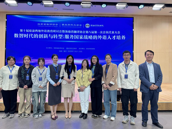第十届琼渝两地外语教育研讨会于2025年11月21日至23日在海南海口顺利举行。此次研讨会以“数智时代的创新与转型:服务国家战略的外语人才培养”为主题,来自海南、重庆及全国多所高校的专家学者齐聚一堂,共同探讨新时代背景下外语教育的发展路径。