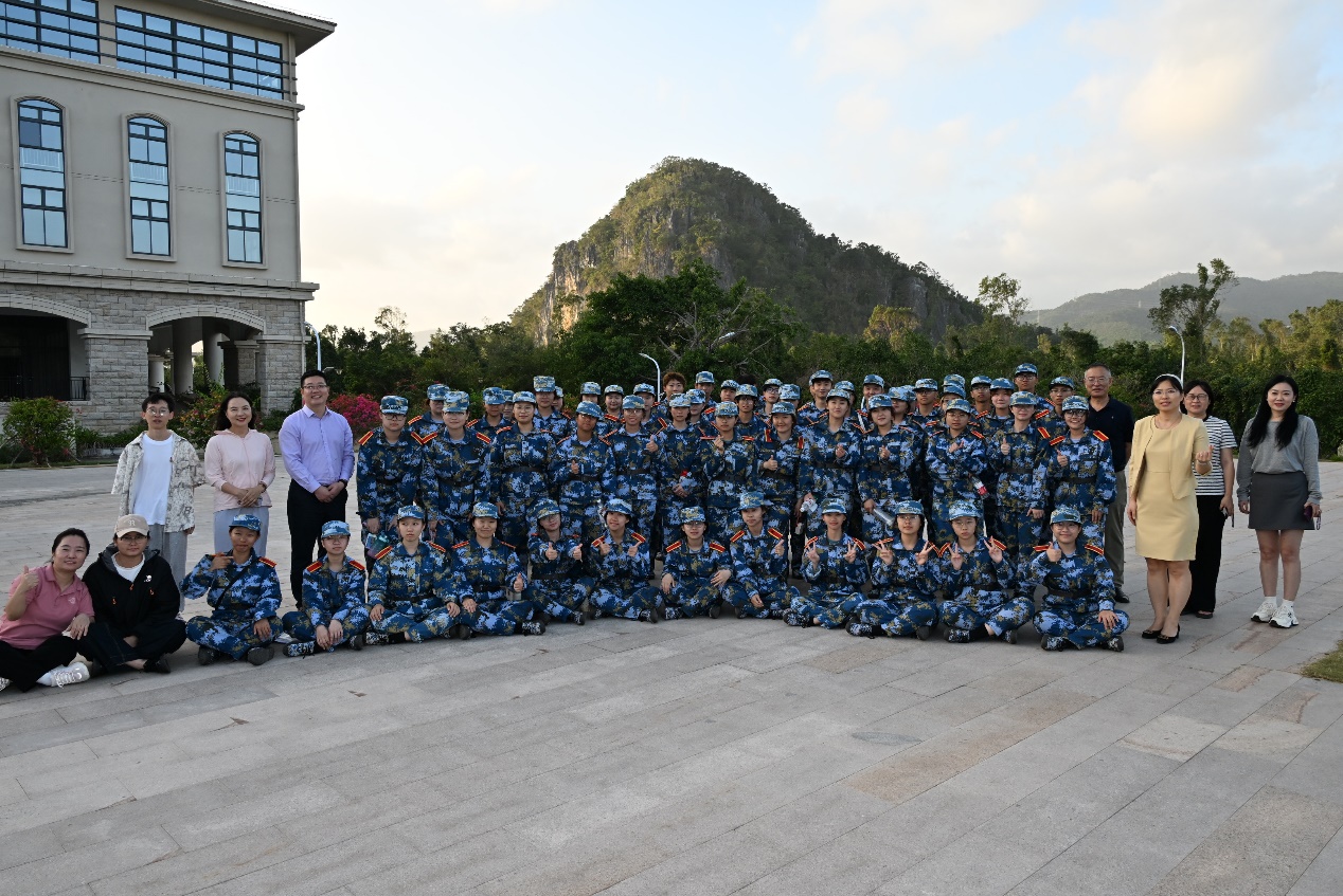 活动尾声,师生共同合影留念,一张张笑脸定格成军训时光里的温暖印记。