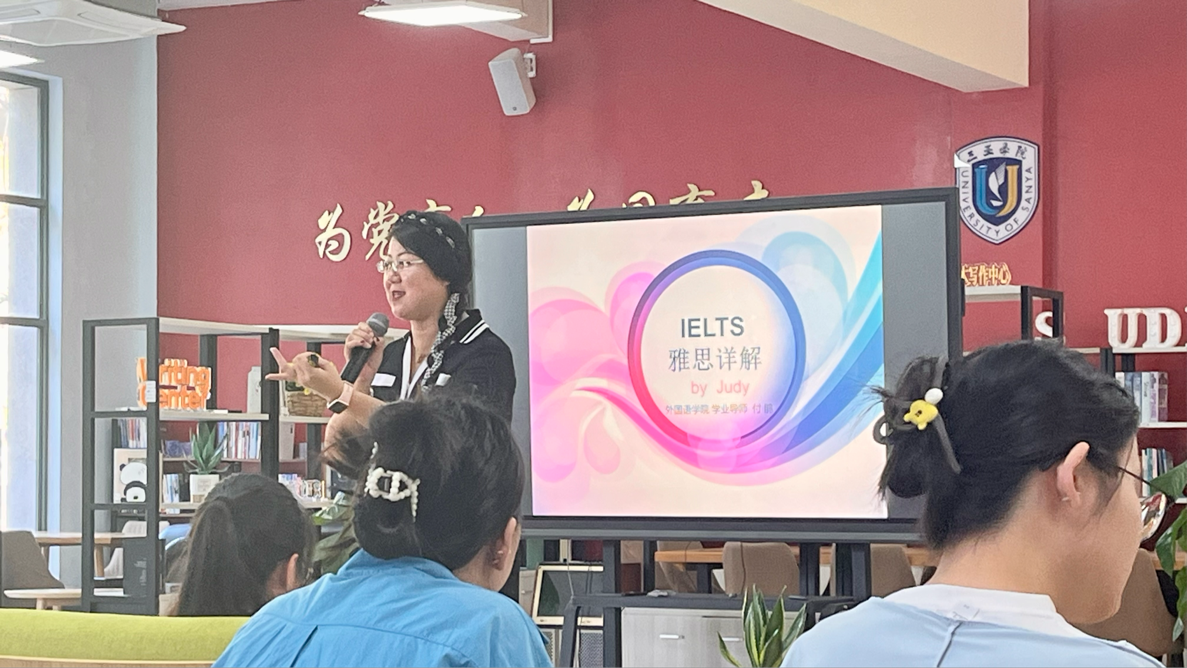 2025年12月23日下午四点,三亚学院外国语学院学业导师付鹃于东区学生中心举办了一场主题为“Explore your ability--通过国际语言测试系统看英语(IELTS)”的辅导讲座。本次活动吸引25名学生齐聚一堂,在交流与思考中共同探寻英语能力发展的更多可能。
